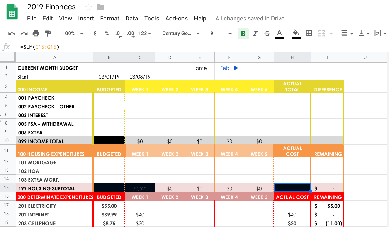 For the most part, I try to stick to the same budget from month to month, but if I need to change it, that can be done here: